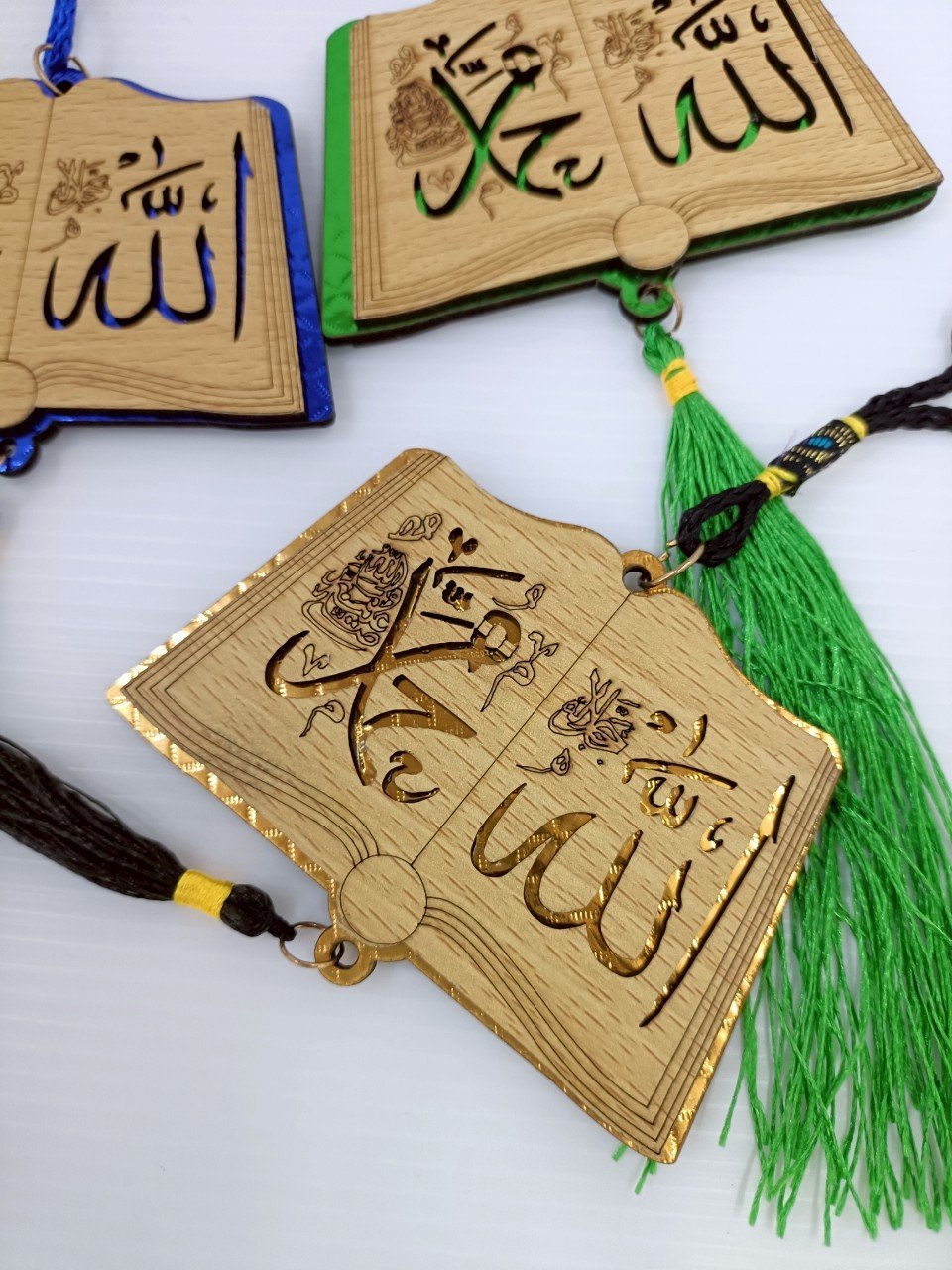 ป้ายห้อยไม้ สินค้ามุสลิม ป้ายแขวนรถ