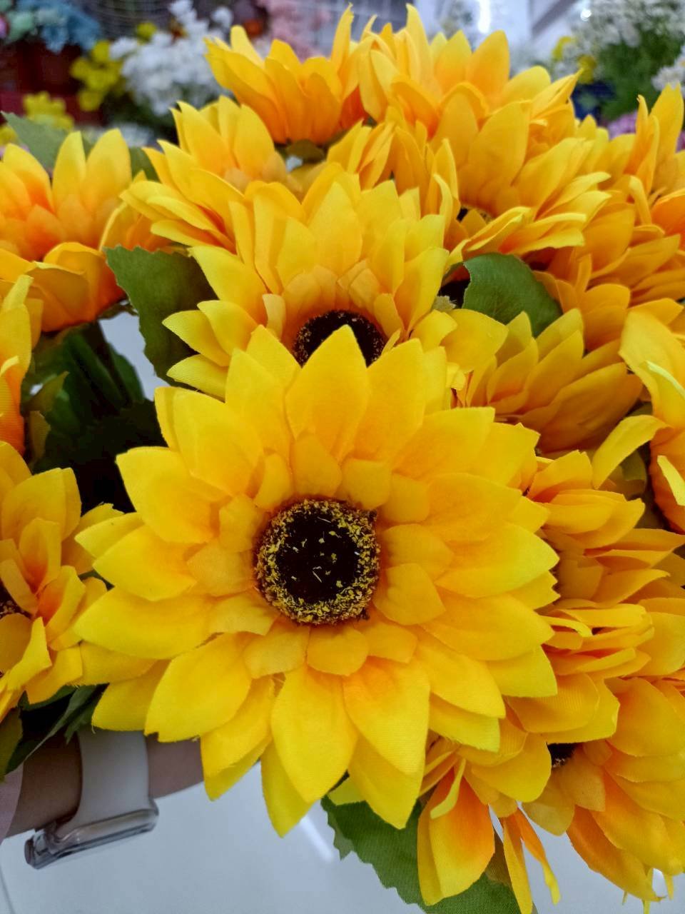 ดอกทานตะวัน ช่อ แซม ดอกไม้ปลอม ดอกไม้ประดิษฐ์ สินค้าพร้อมส่ง *** อย่าลืมอ่านรายละเอียดนะคะ**** -ทานตะวัน 1 ช่อ มี 7 ก้าน ราคา 25 บาท ขนาดหน้าดอก 8ซม. ความยาวจากดอกถึงก้าน 23 ซม. -ทานตะวัน 1 ก้าาน มี 3ดอก ราคา 45 บาท ขนาดหน้าดอก 11 ซม.ความยาวจากดอกถึงก้าน 66 ซม. -ทานตะวัน 1 ก้าน มี 4 ดอก ราคา 29 บาท แซมดอกเล็ก 5 ดอก ขนาดหน้าดอก 8ซม. ความยาวจากดอกถึงก้าน 42 ซม. -ทานตะวัน 1 ก้าน มี 5ดอก ราคา 29 บาท หน้าดอก 7ซม. ความยาวจากดอกถึงก้าน 55 ซม. ทานตะวัน ช่อ 5 ก้าน 5 ดอก ราคา 89 บาท หน้าดอก 15 ซม.ความยาวจากดอกถึงก้าน 45 ซม. -ทานตะวัน 1 ก้าน มี 3 ดอก ราคา 25 บาท หน้าดอก 9 ซม. ความยาวประมาน 41 ซม. *****สินค้าถ่ายจากงานจริงหน้าร้านนะคะ **** ****