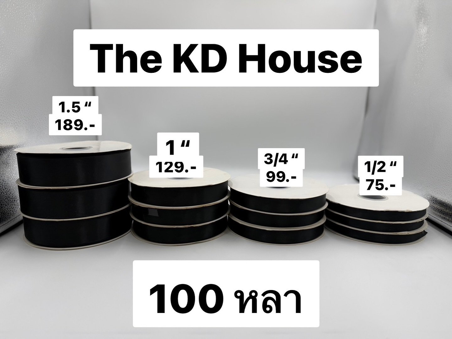 ริบบิ้นผ้าซาติน ขนาดความยาว 100 หลา ขนาด 1.5 นิ้ว / ขนาด 1 นิ้ว / 3/4 นิ้ว / 1/2 นิ้ว