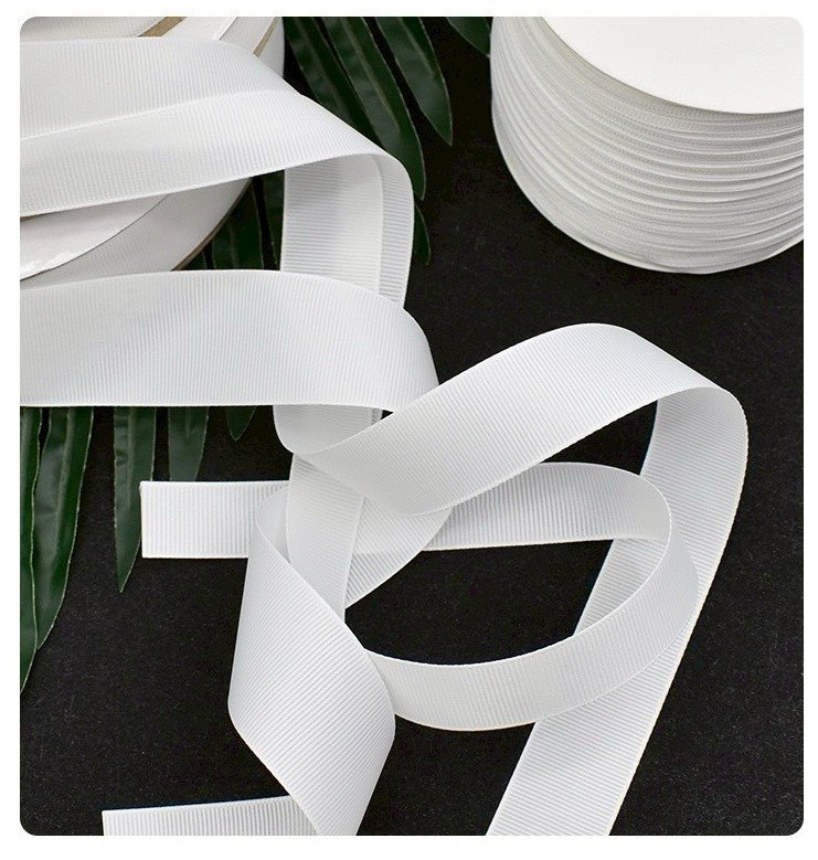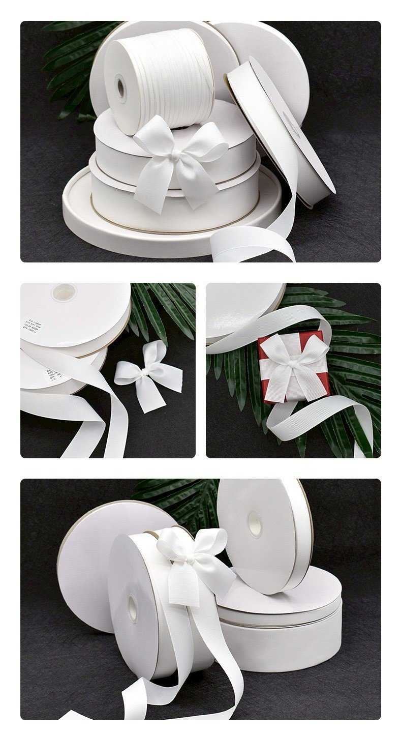 ริบบิ้นสีขาว ผิวร่อง ริบบิ้นตกแต่ง ความยาว 100 หลา ขนาด 12 มม. ขนาด 15 มม. ขนาด 19 มม.