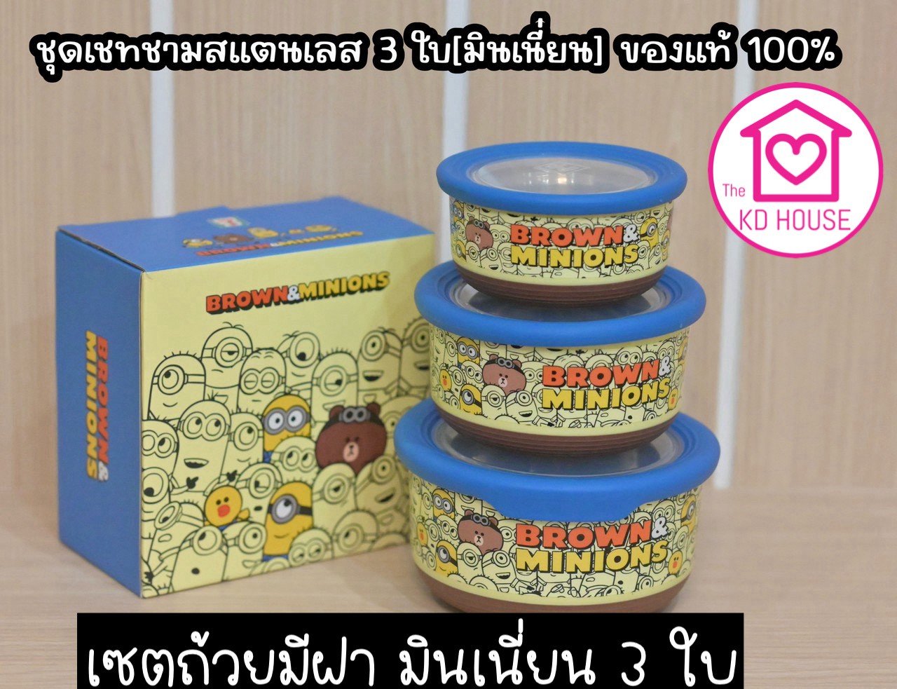เซตด้วยมีฝา ลายมินเนี่ย 3 ใบ พร้อมส่ง ชุดชามสแตนเลส -ใบใหญ่ 1200 มล. -ใบกลาง 730 มล. -ใบเล็ก 420 มล.
