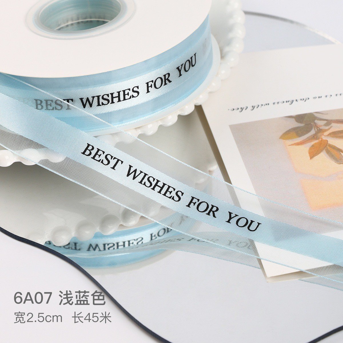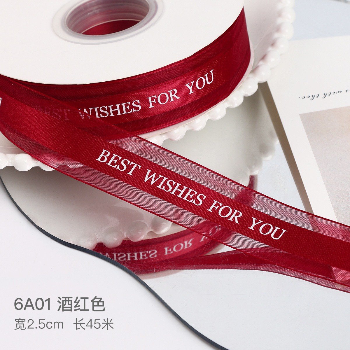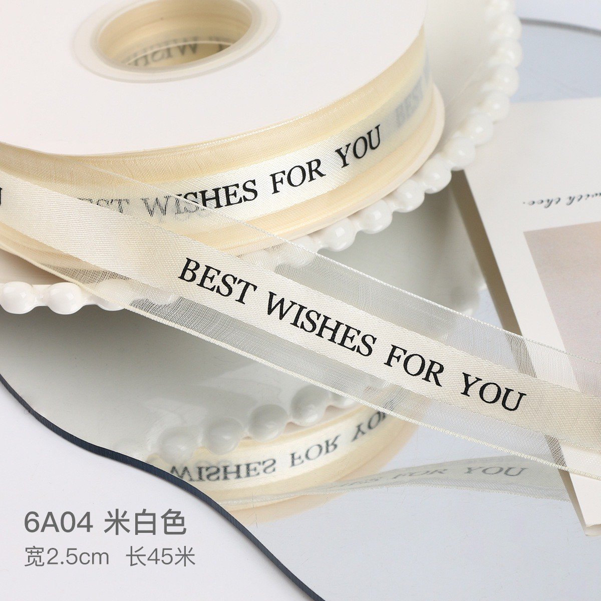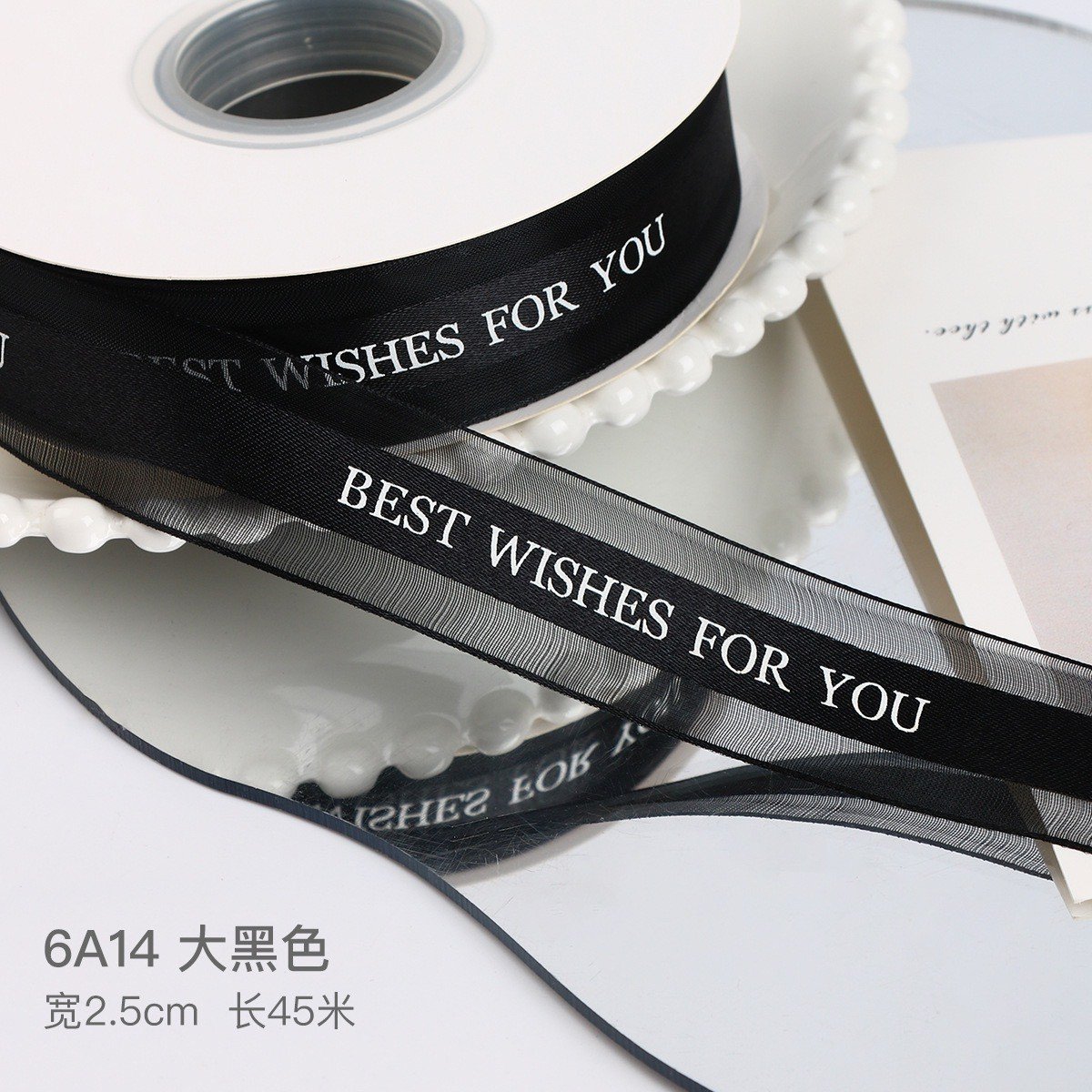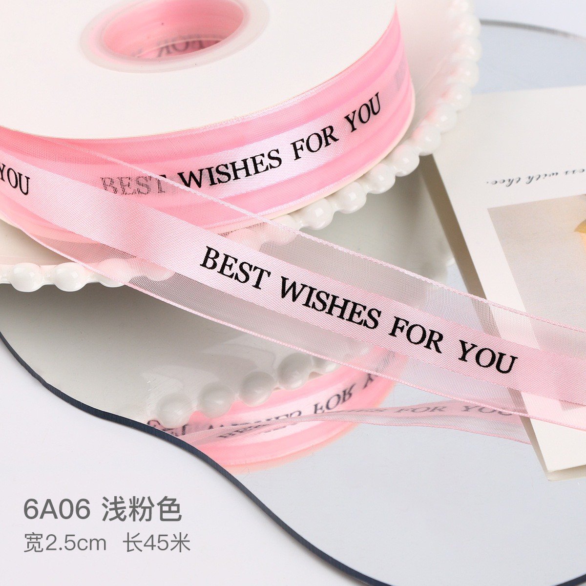 ริบบิ้นผ้า ริบบิ้นผ้า สกรีน BEST WISHES FOR YOUทูเลเยอร์ หน้ากว้าง 2.5 ซม. ยาว 50 หลา (45 เมตร) ใครที่กำลังมองหาริบบิ้นสวยๆ ต้องอันนี้เรยคะ