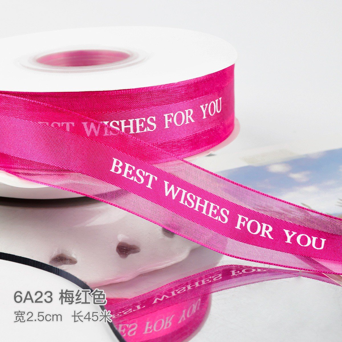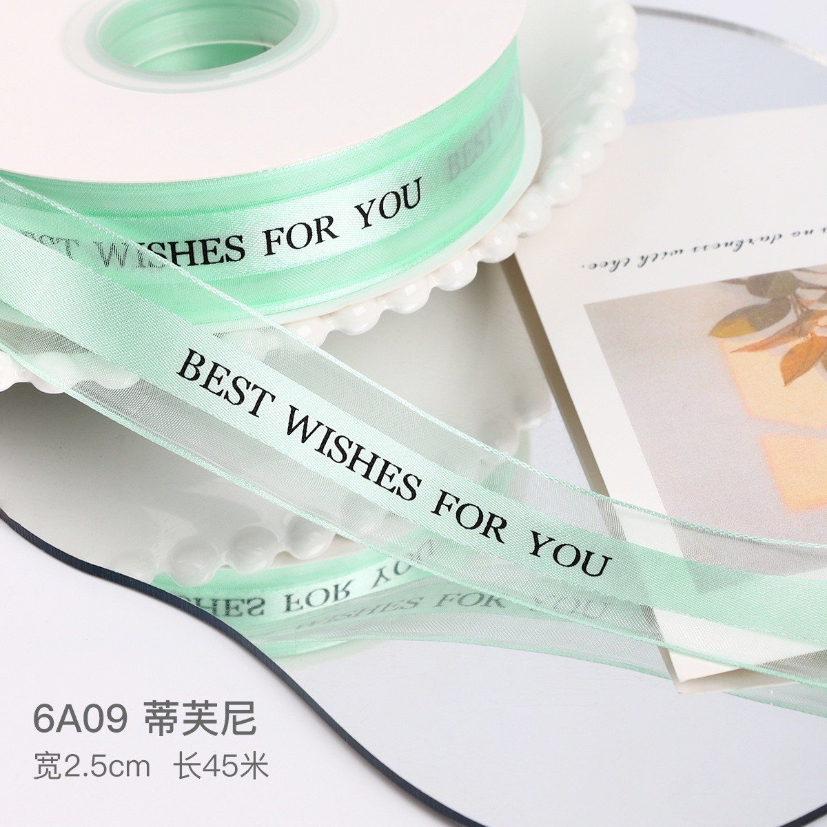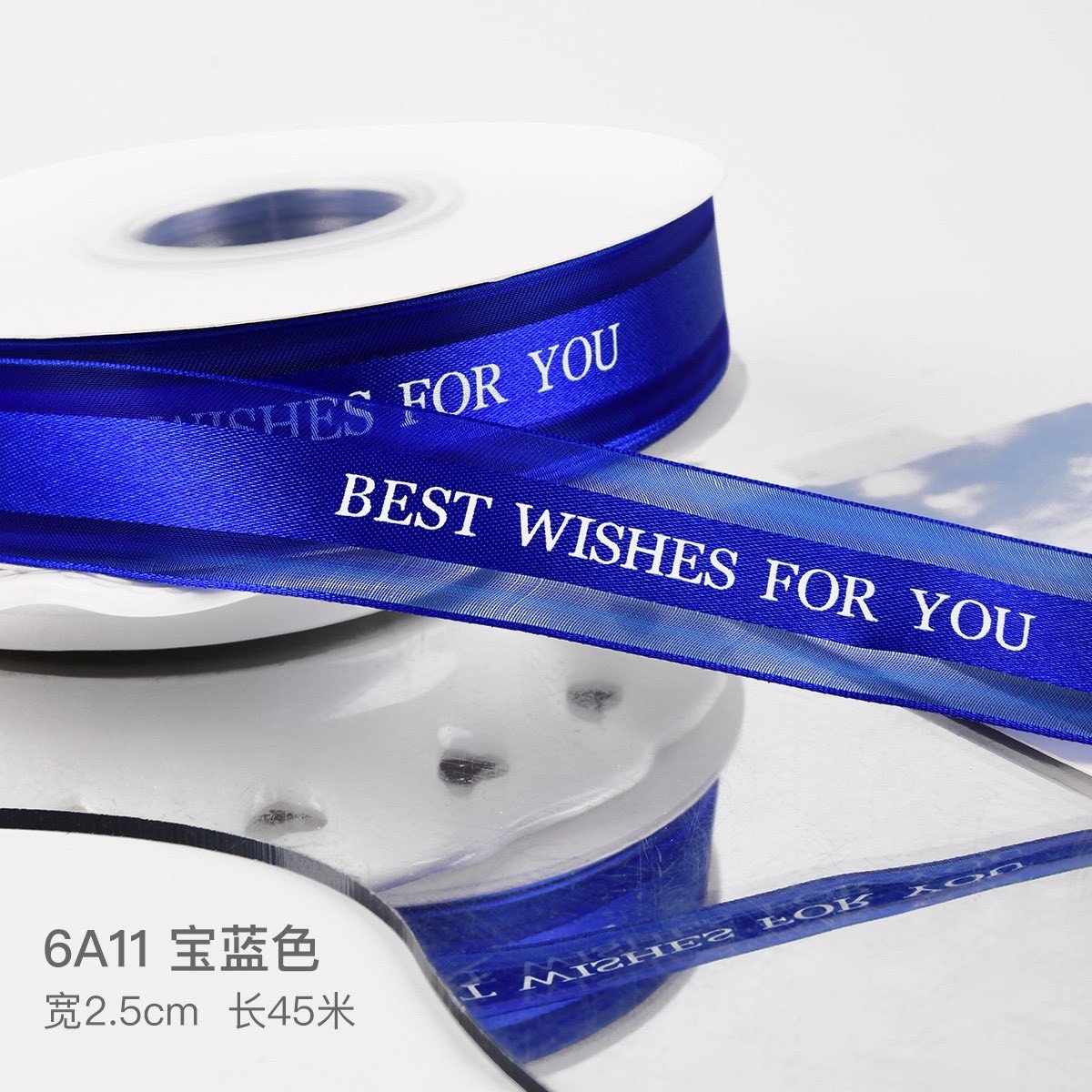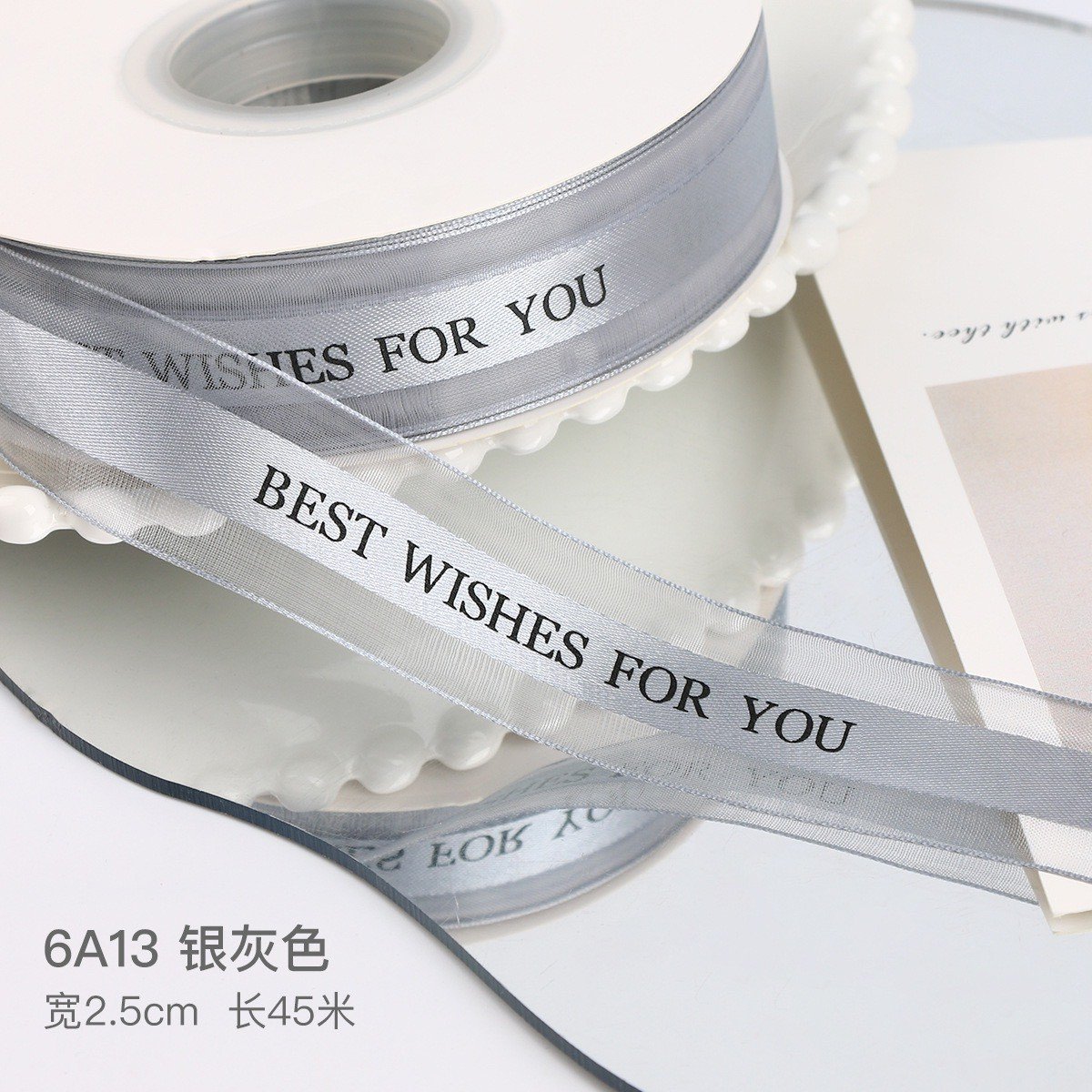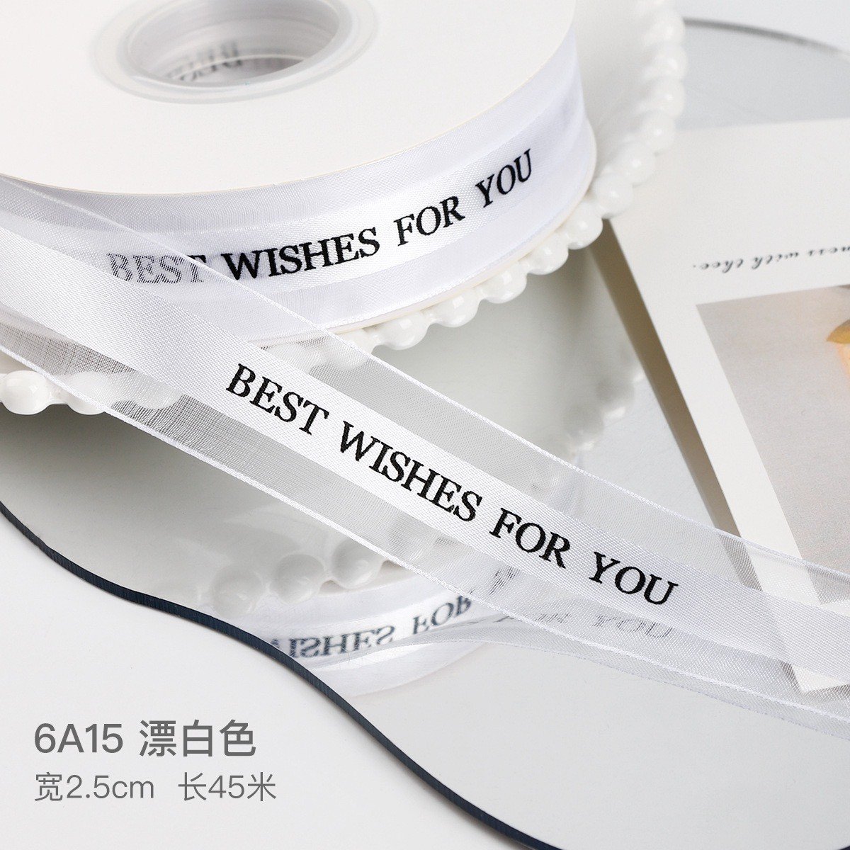 ริบบิ้นผ้า ริบบิ้นผ้า สกรีน BEST WISHES FOR YOUทูเลเยอร์ หน้ากว้าง 2.5 ซม. ยาว 50 หลา (45 เมตร) ใครที่กำลังมองหาริบบิ้นสวยๆ ต้องอันนี้เรยคะ