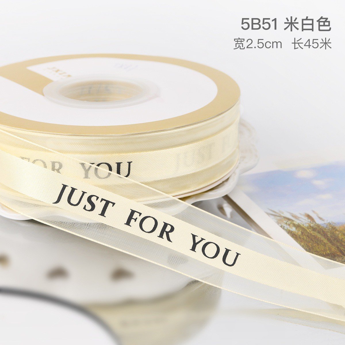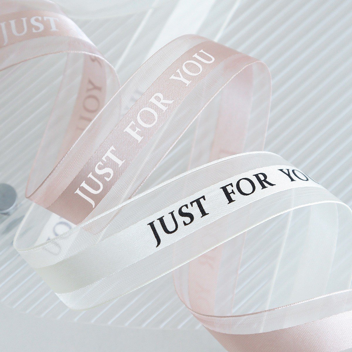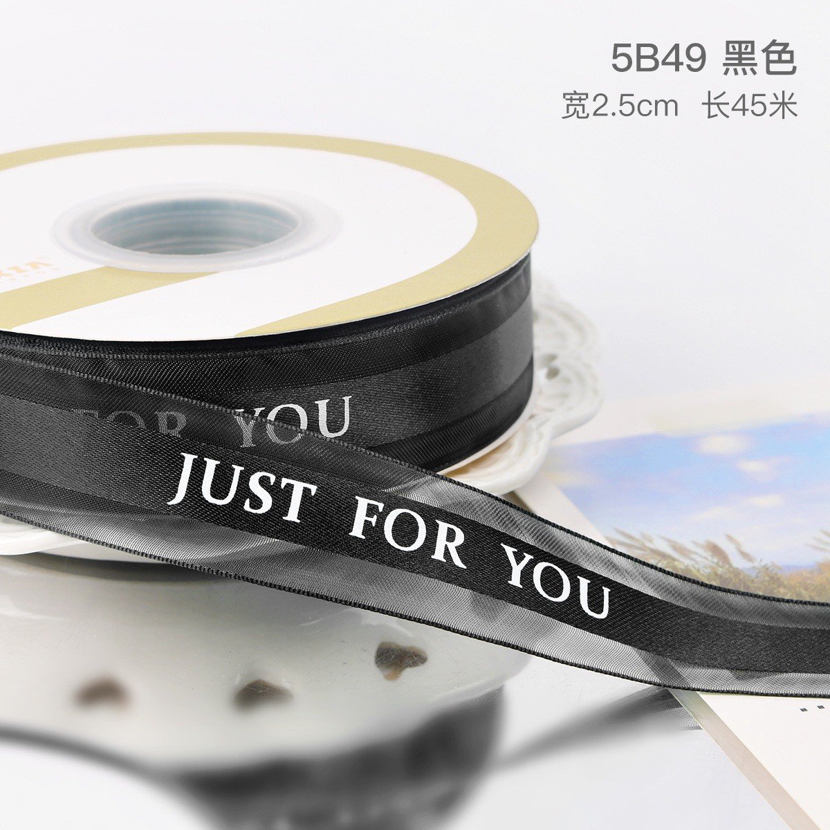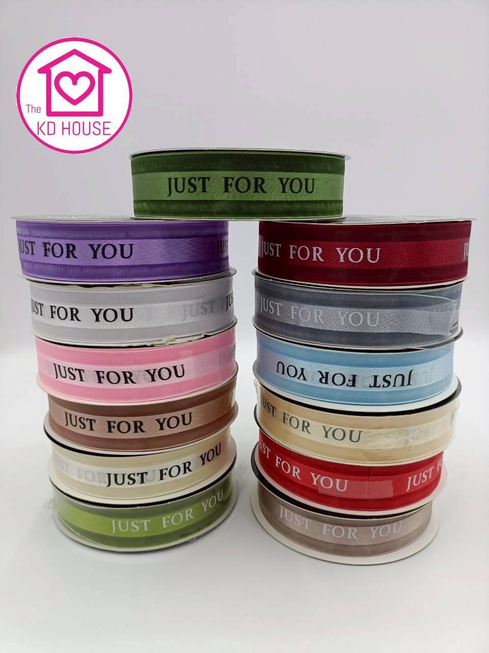 ริบบิ้นผ้า สกรีน JUST FOR YOU ทูเลเยอร์ หน้ากว้าง 2.5 ซม. ยาว 50 หลา (45 เมตร)