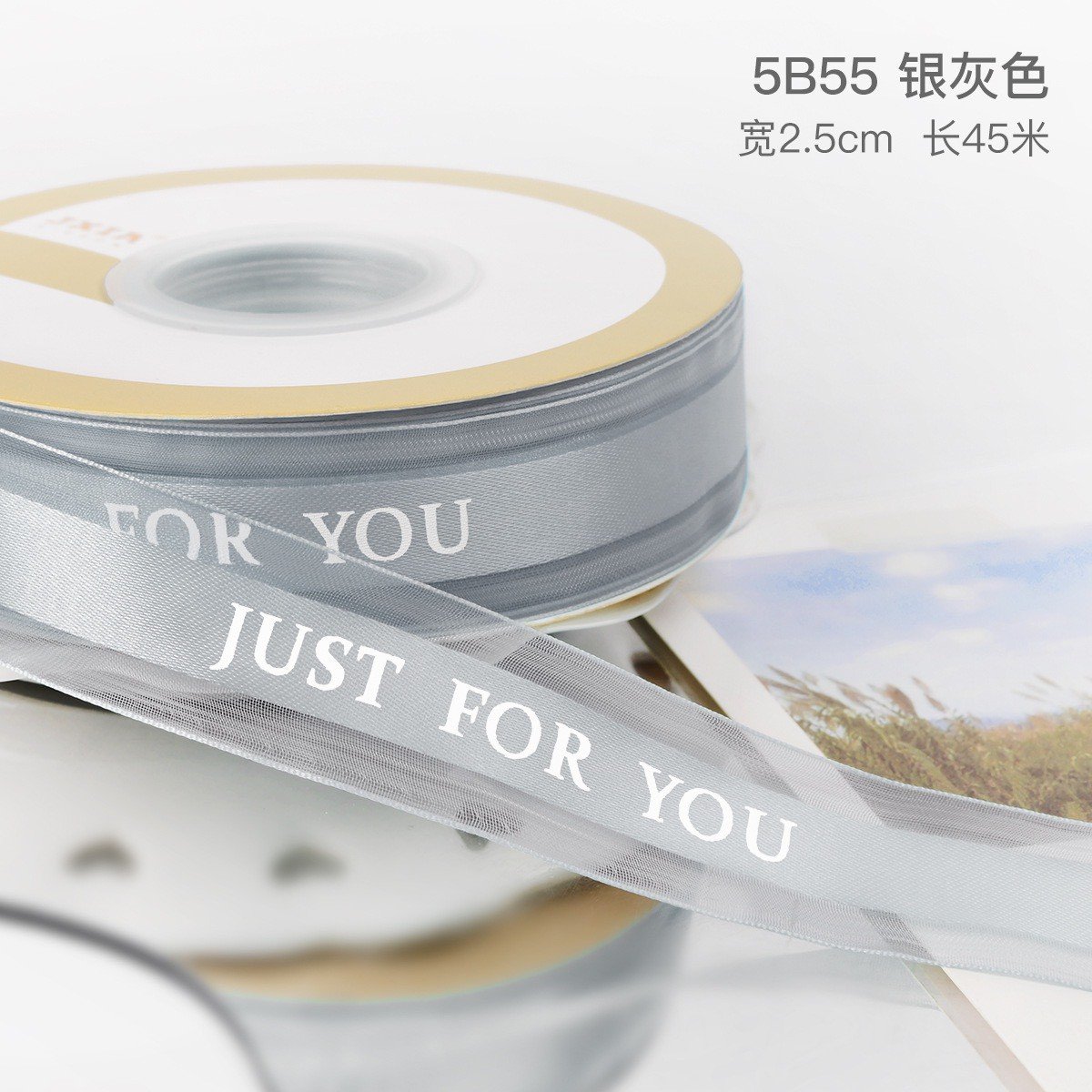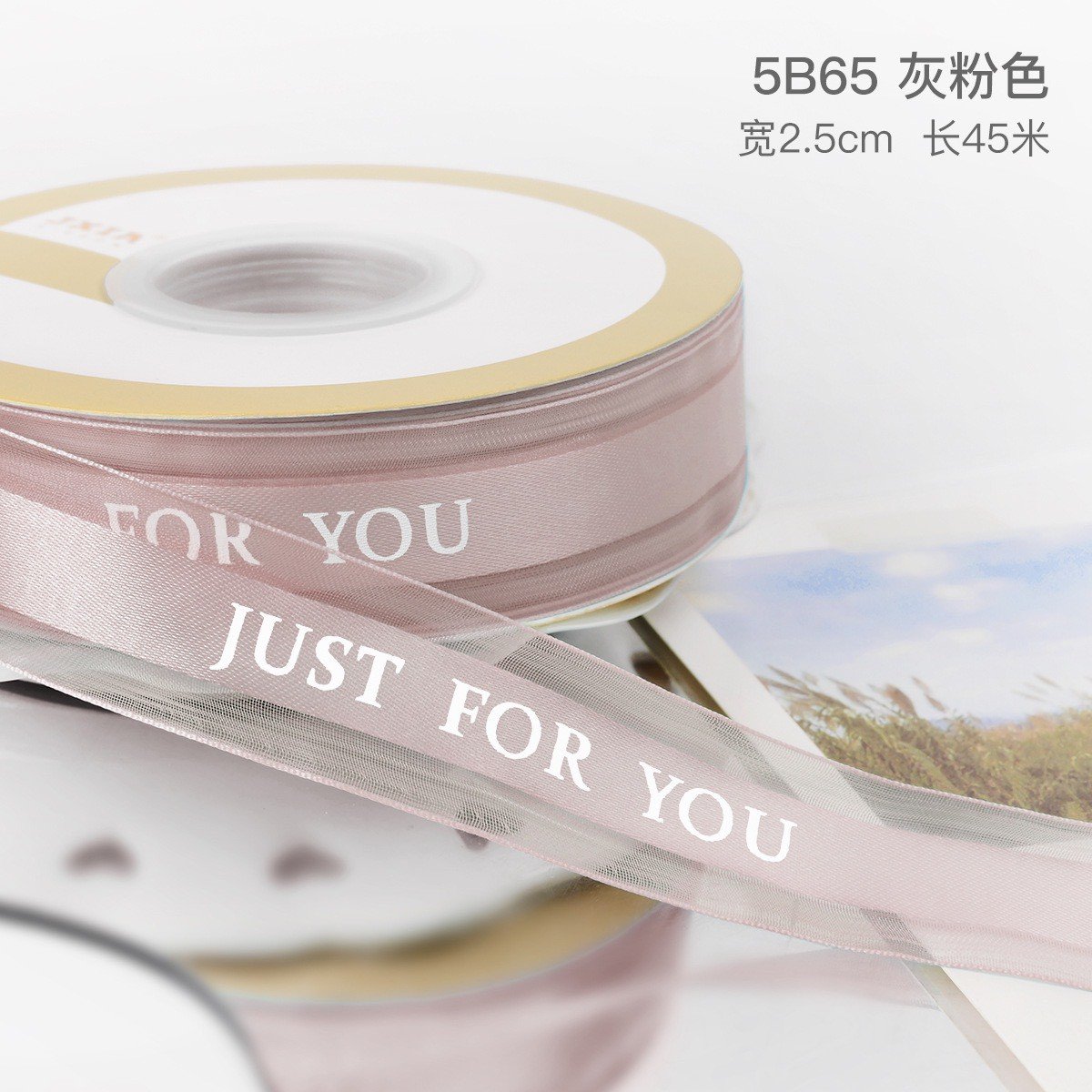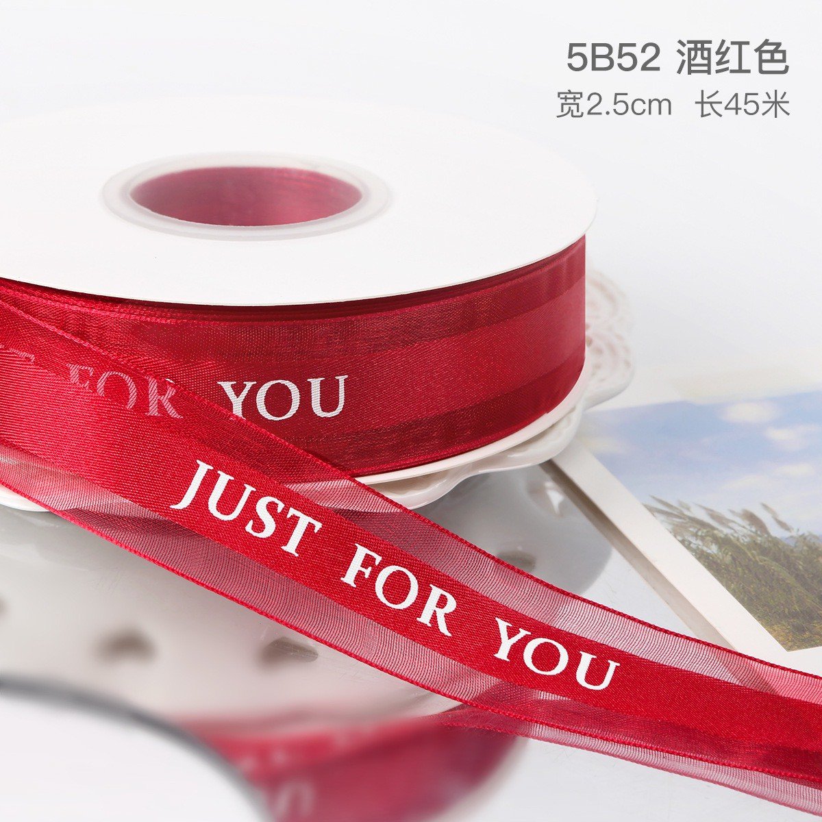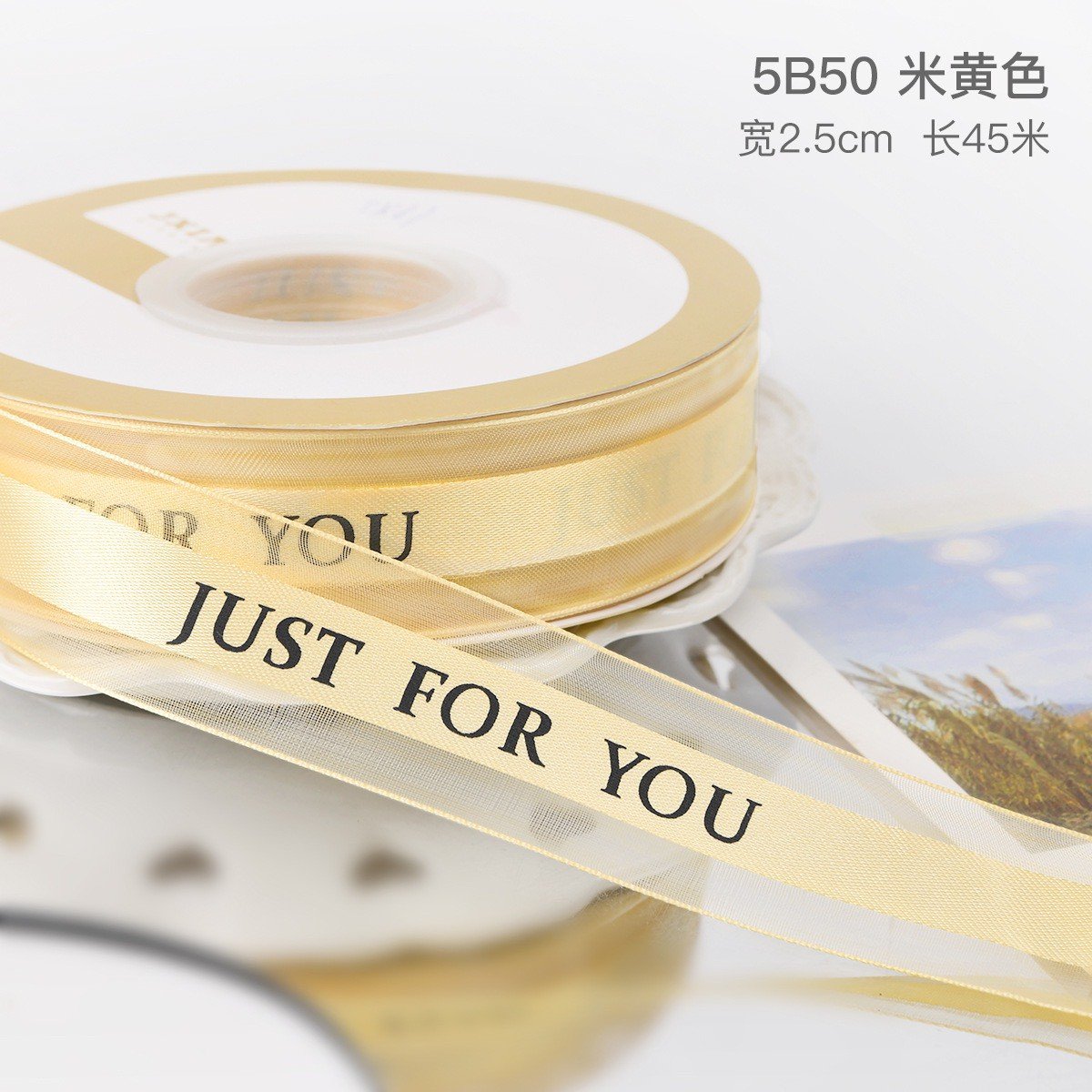 ริบบิ้นผ้า สกรีน JUST FOR YOU ทูเลเยอร์ หน้ากว้าง 2.5 ซม. ยาว 50 หลา (45 เมตร)