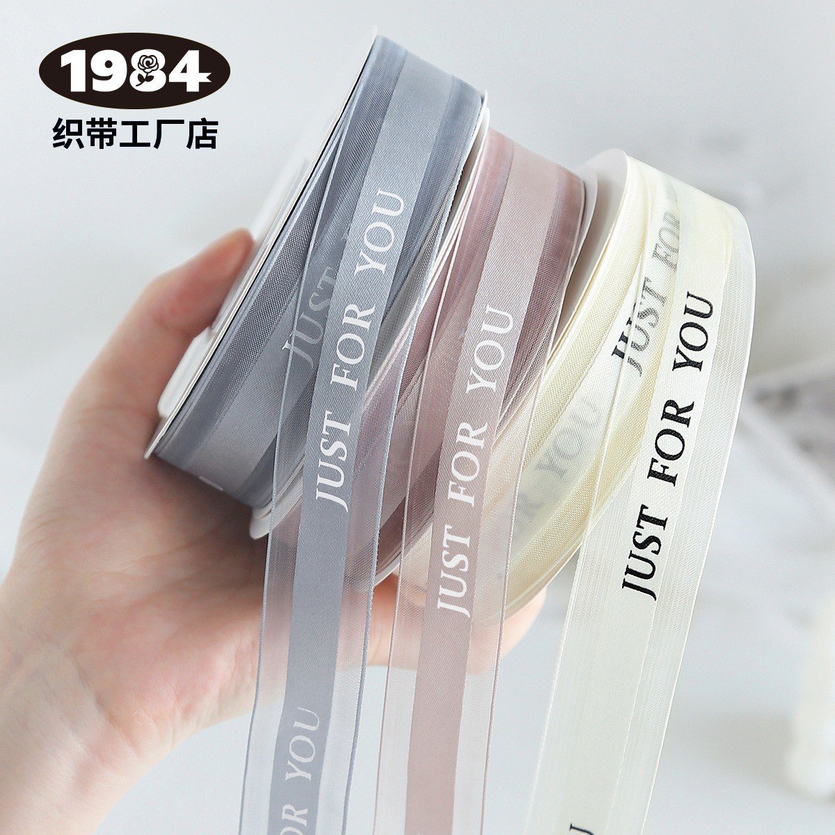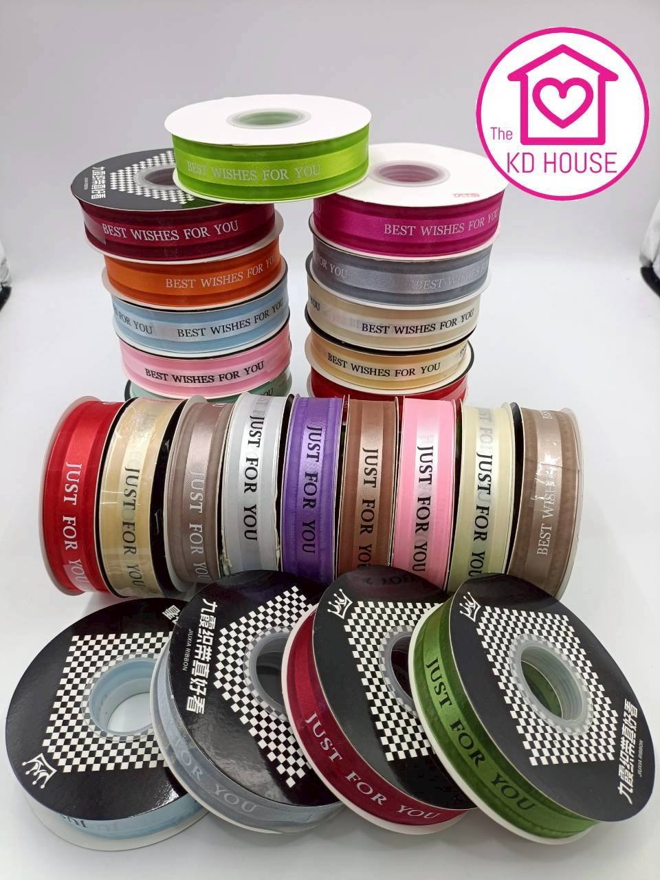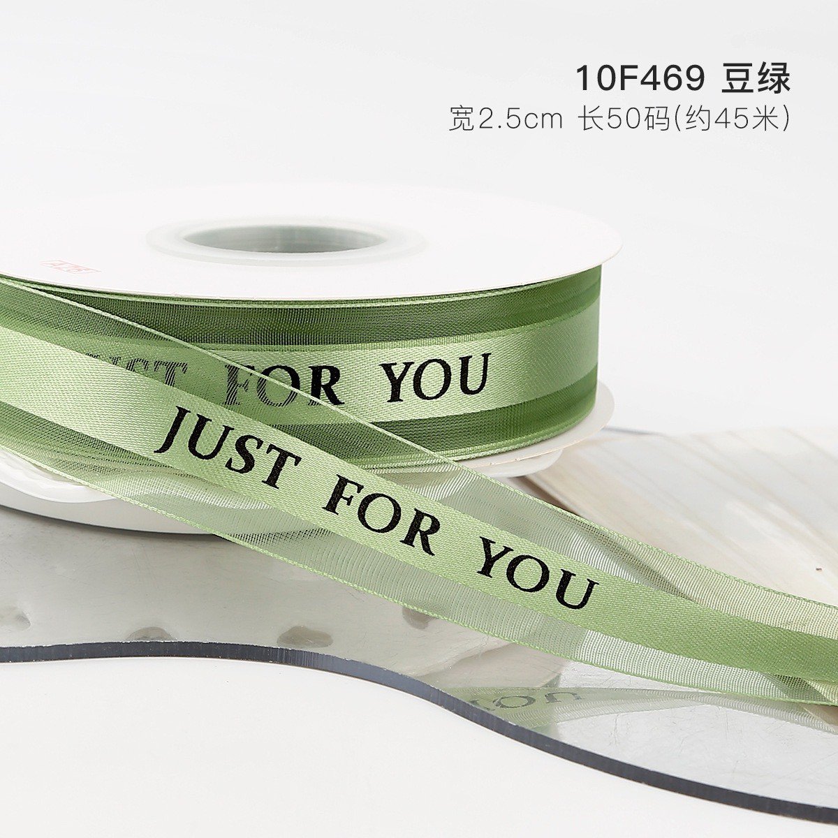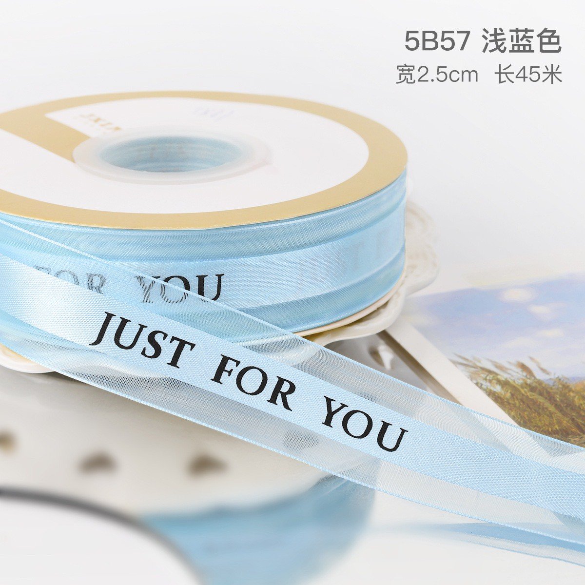 ริบบิ้นผ้า สกรีน JUST FOR YOU ทูเลเยอร์ หน้ากว้าง 2.5 ซม. ยาว 50 หลา (45 เมตร)