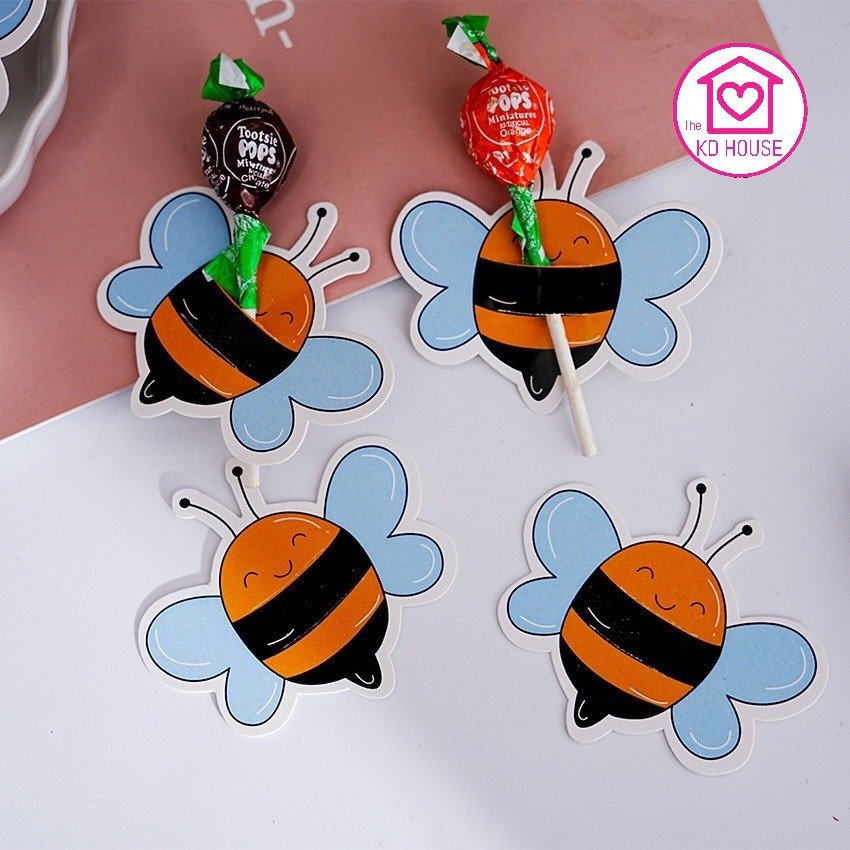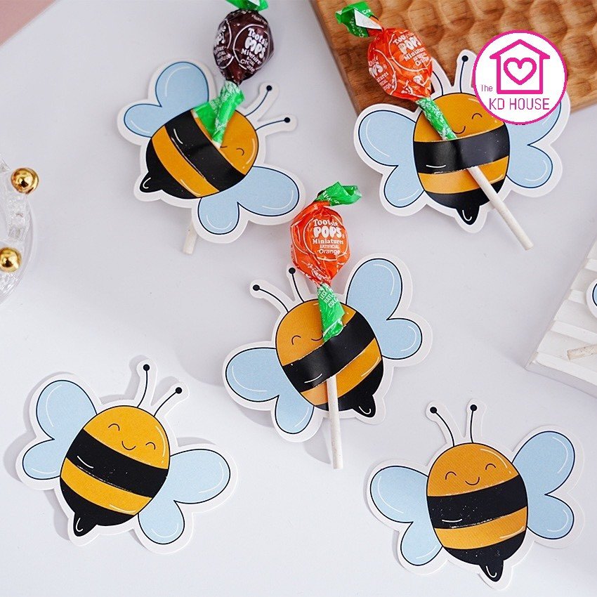 การ์ดเสียบอมยิ้ม รูปผึ้งน้อยน่ารัก 1 แพ็ค มี 50 แผ่น