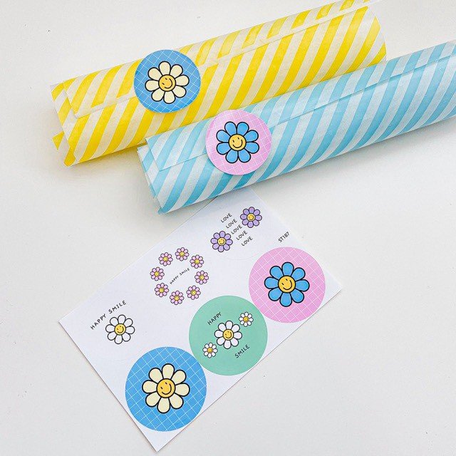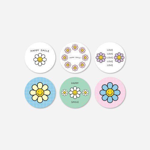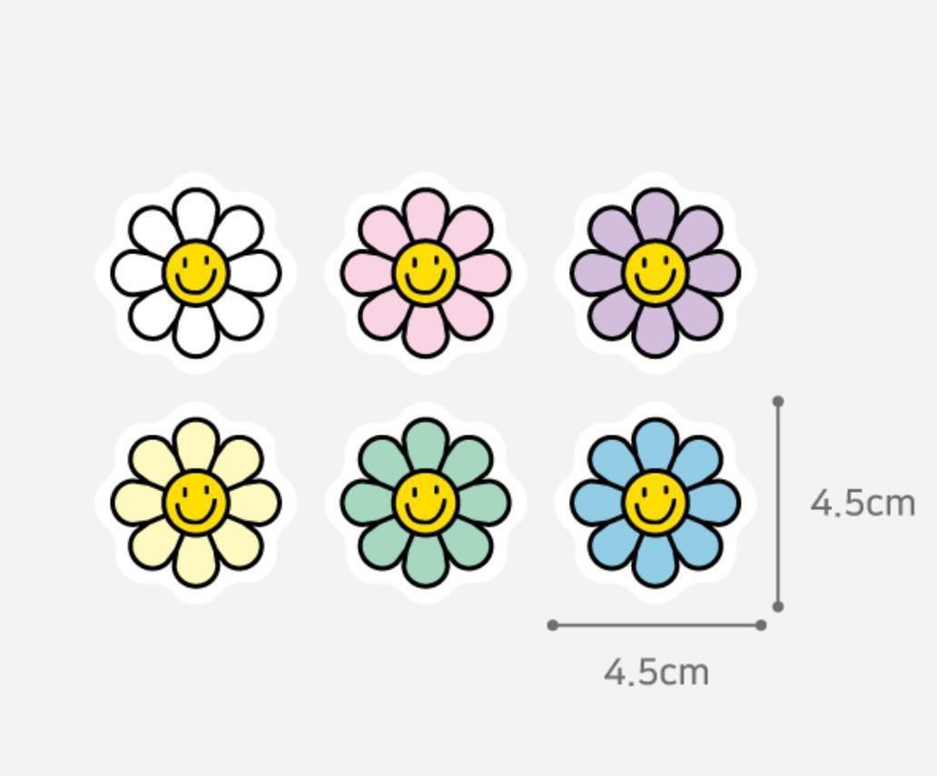 สติกเกอร์กลม 6 ดวง ดอกเดซี่ สุดน่ารัก