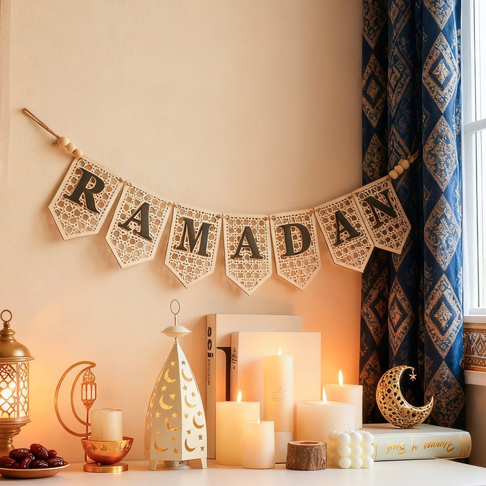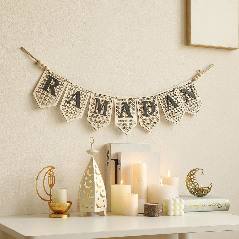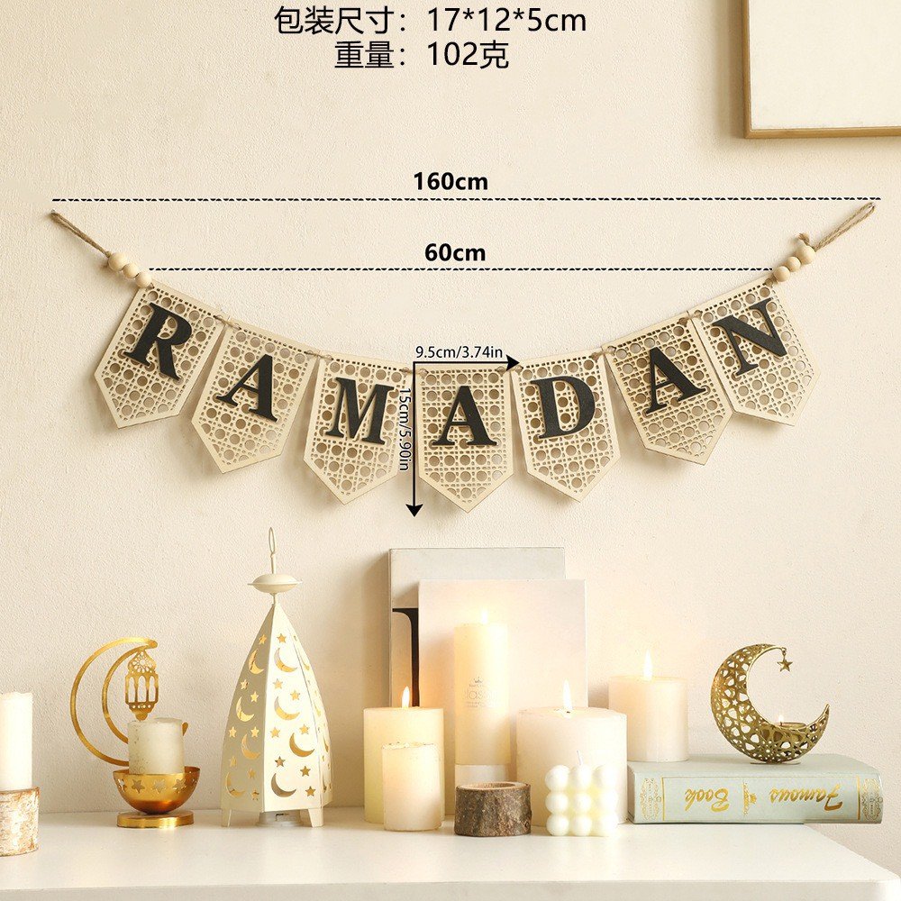 ธงราวงานไม้ฉลุ RAMADAN ธงตกแต่ง พร้อมส่งในไทย