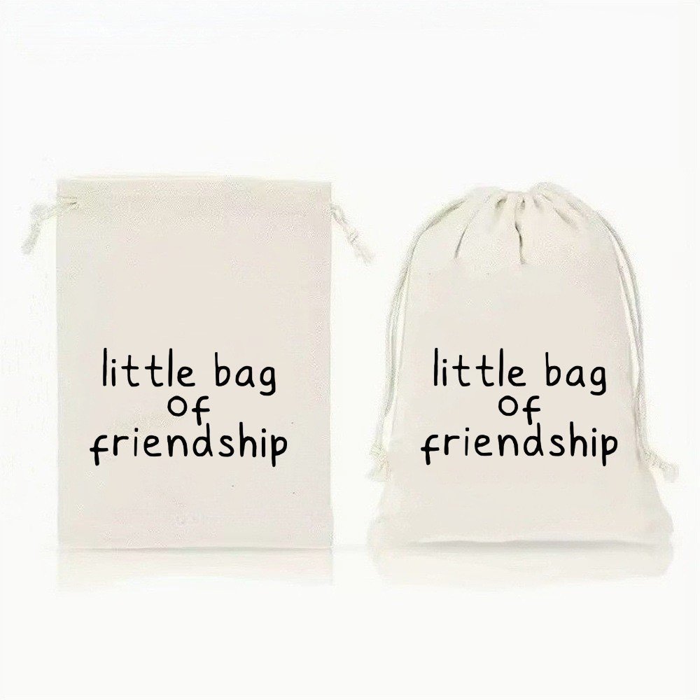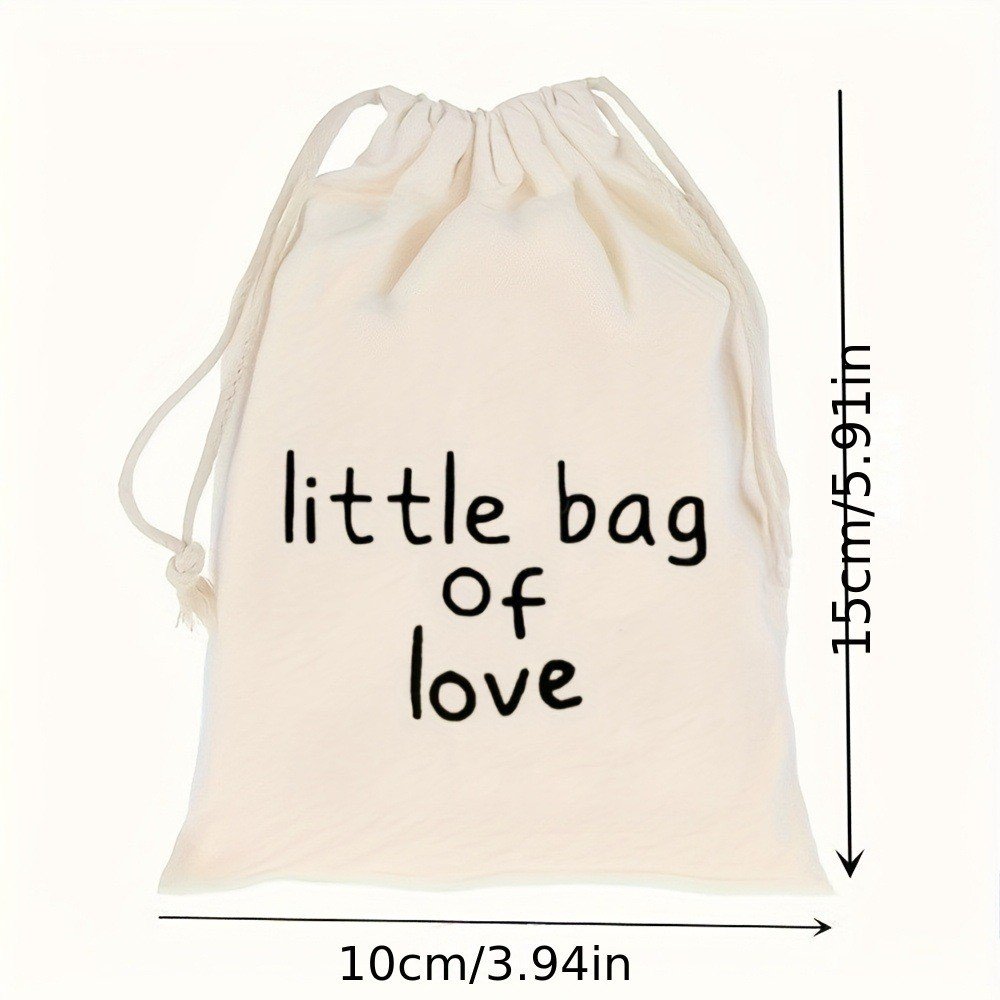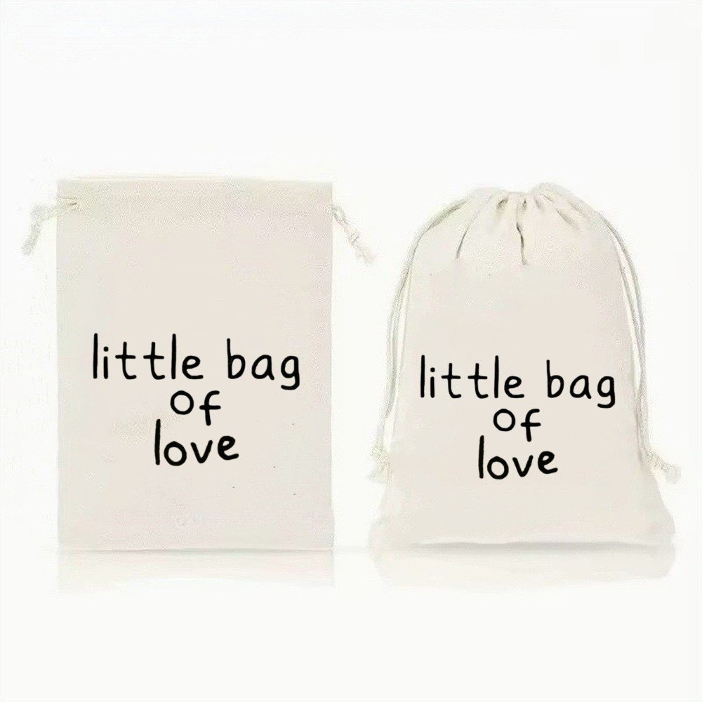 ถุงผ้าดิบ หูรูด พิมพ์อักษร ขนาด 15*10 ซม.