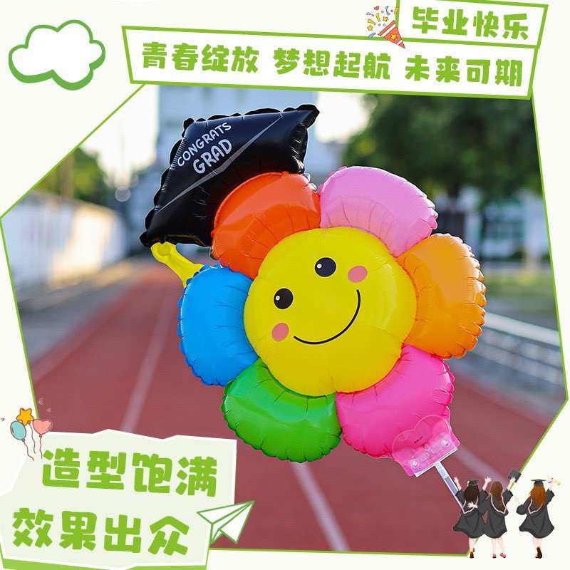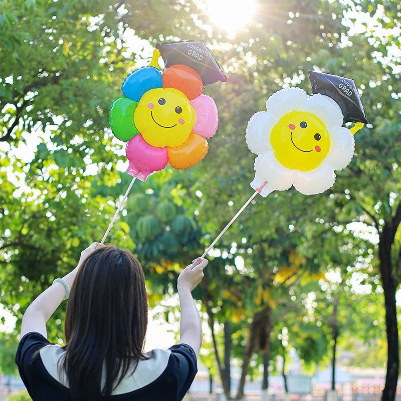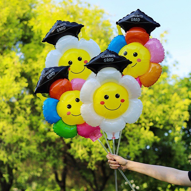 ลูกโป่งเดซี่ใส่หมวกรับปริญญามาพร้อมก้าน